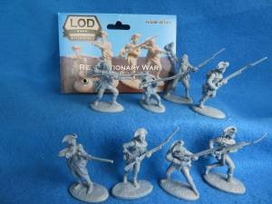 LOD108A Revolutionary War Colonial Regular Army. 16 figures in 8 poses (blue) 54 mm or 1/32 scale figures. These were the figures that were from Ron Barzso Company