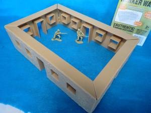 BMC741B A hefty rectangular blockhouse 12 1/8" long X 8" wide by 3 1/4" tall. Useable for many different historical eras, like WWI, WWII, Korean War, southwest etc. Plastic 1/32 ( originally this was the base building for the San Juan Hill playset)