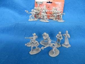 LOD018A "The Aliens are Here" set of 12 Aliens in 6 poses by LOD. This set is in gray, standing figure is about 2 1/4" tall.