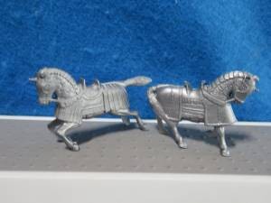 XR103B A lot of 8 Marx medieval knight horses made from the original Marx molds. They came in the castle and knight + Viking playsets of the 1970's. Both poses are included, these are in silver