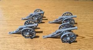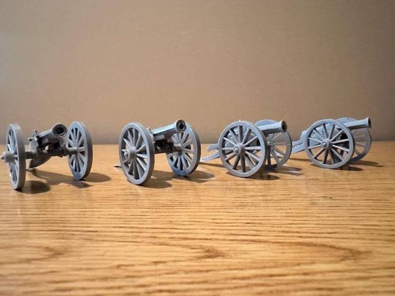 4 - MARX 6 pounder Field Cannons (gray) you will get four  MXR731D for 1:32 scale plastic toy soldiers.This is the cannon Marx used in many of their Fort Apache, Alamo, Civil War, Rev War and even Military Academy and other playsets. These were made from the original Marx molds. VERY LIMITED NUMBER AVAILABLE! They came in a very nice soft gray plastic